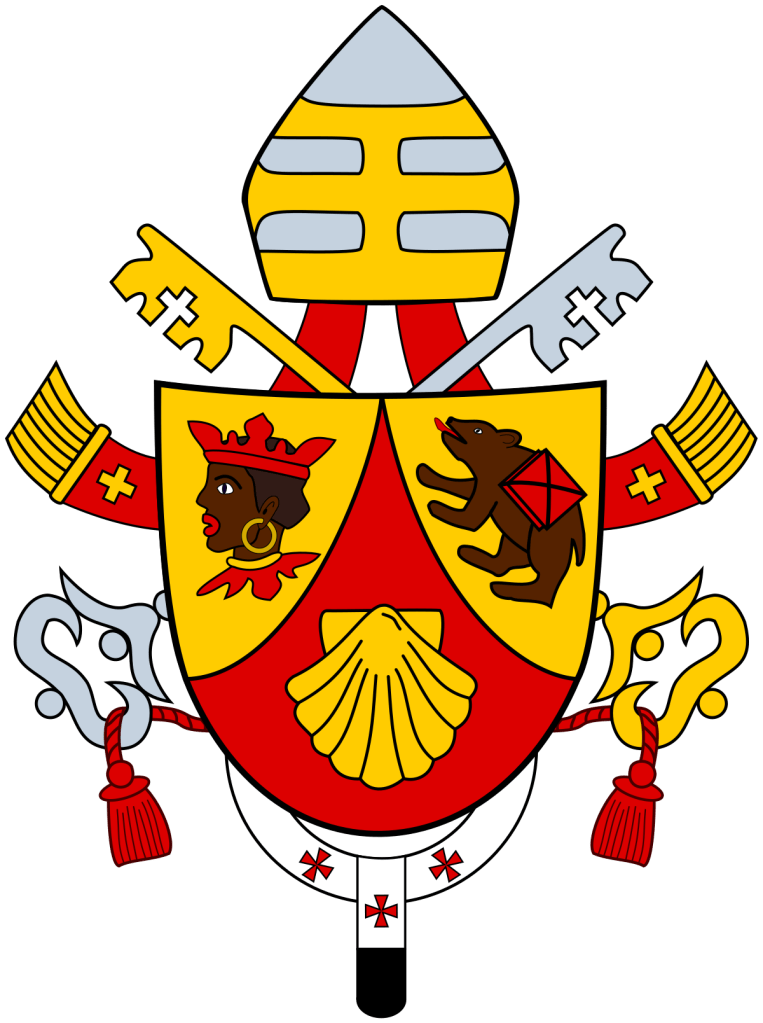Pyhään Korbinianukseen liittyy legenda, jonka mukaan karhu tappoi matkalla olleen pyhimyksen hevosen. Niinpä kuormajuhtansa menettänyt Korbinianus pakotti karhun kantamaan kamansa aina Roomaan asti. Korbinianuksen karhu on vakiosymboli Freisingin piispojen vaakunoissa, ja Joseph Ratzinger jatkoi samaa perinnettä. Vasten tahtoaan Roomaan kutsuttuna symboliikka syveni: hän näki itsensä Korbinianuksen karhuna, kuormajuhtana, ja kun paavinviran taakka lankesi hänen päälleen vuonna 2005, Korbinianuksen karhu pääsi myös paavin vaakunaan.